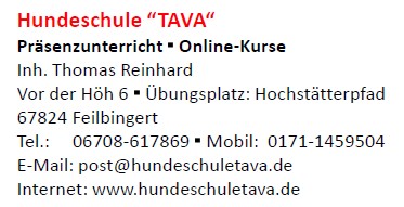 Stolz geben wir die Kooperation mit der Hundeschule TAVA in Feilbingert bekannt!